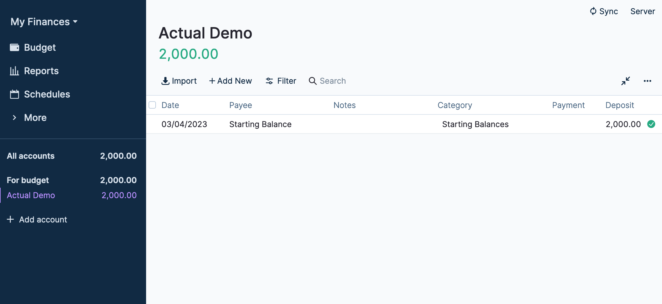 You can now see the account in the sidebar of Actual