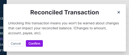 Of course, there's always the possibility you need to change a locked transaction. You can click on the lock of any transaction to open a dialog to unlock it.