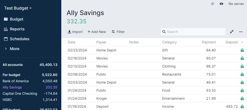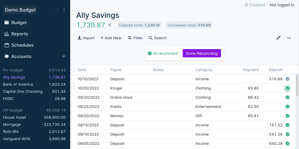 Upon pressing done, all cleared transactions will receive a lock icon. This represents the fact that they were included in a reconciliation and makes it harder to accidentally change.