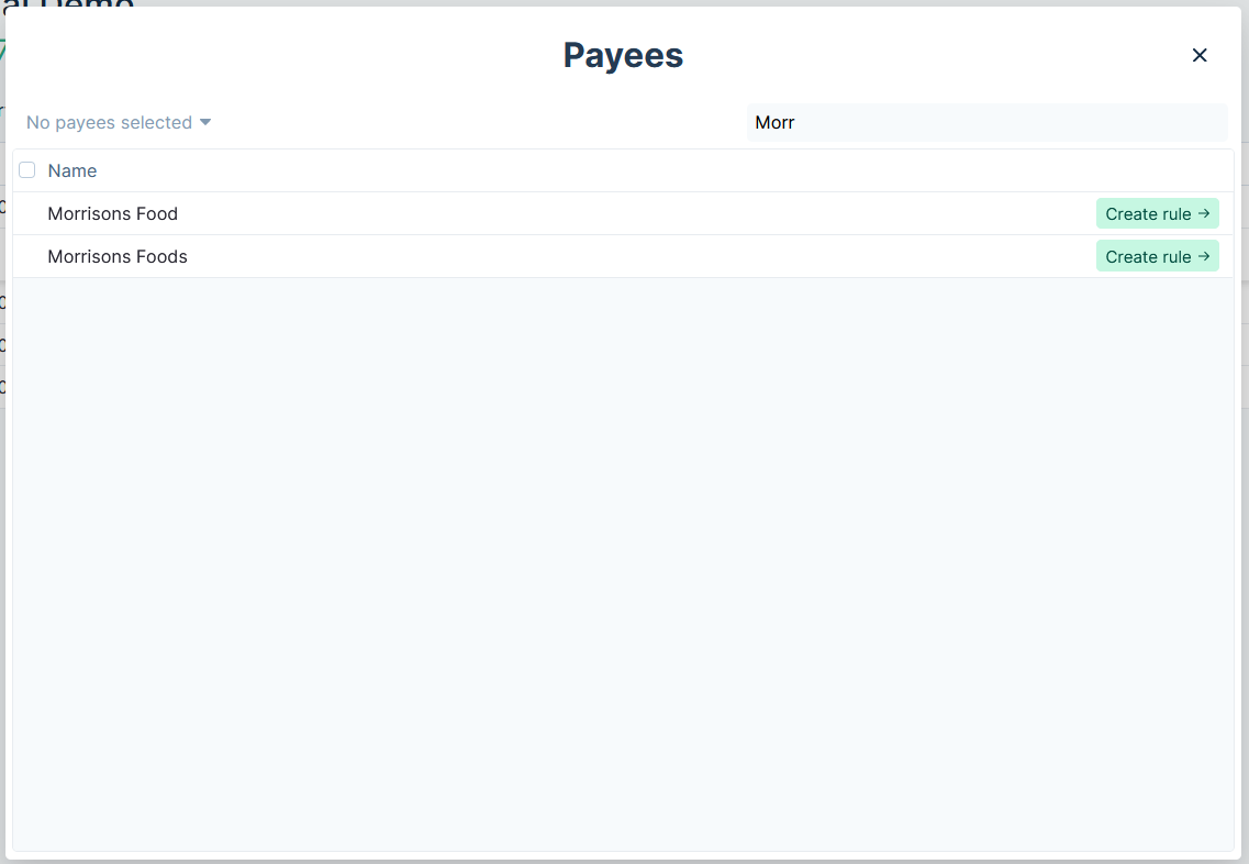 A powerful feature is merging payees. You may already have months worth of data and a lot of ugly Morrisons payees that all vary slightly. You want to merge all of these together into one payee.